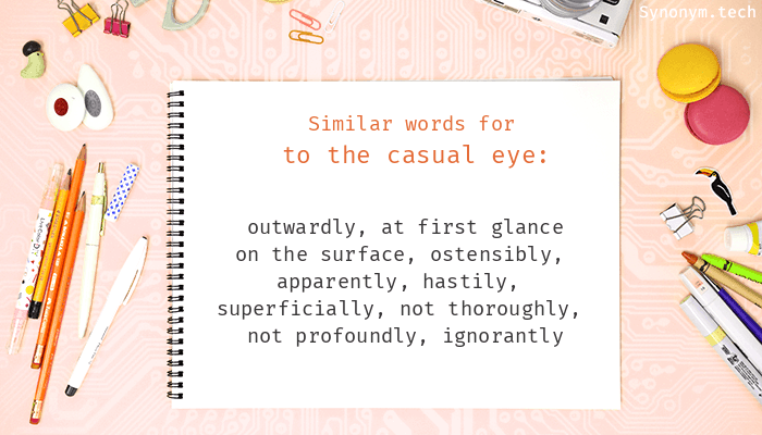 For more similar words, try To the casual eye on Thesaurus.plus dictionary