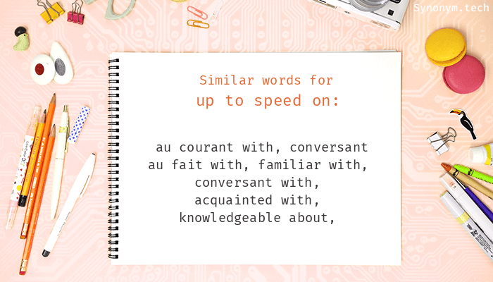 For more similar words, try Up to speed on on Thesaurus.plus dictionary