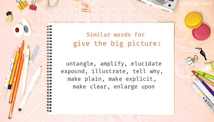 For more similar words, try Give the big picture on Thesaurus.plus dictionary