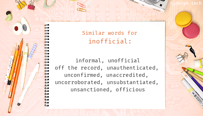 For more similar words, try Inofficial on Thesaurus.plus dictionary